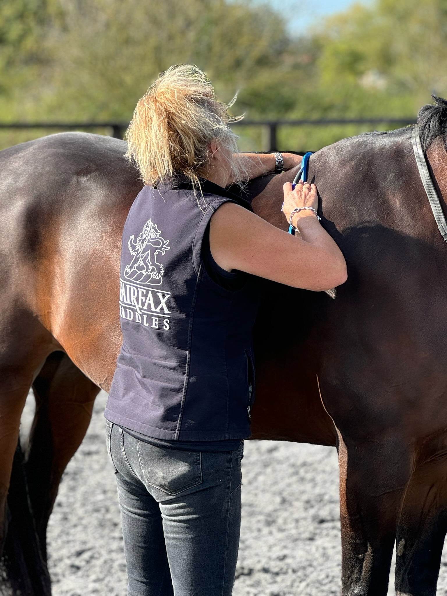 Upon arrival, we’ll introduce ourselves to you and your horse, and ask about any known vices, health issues, or injuries. We’ll begin by examining your horse’s back for any lumps, bumps, or signs of pain or discomfort.