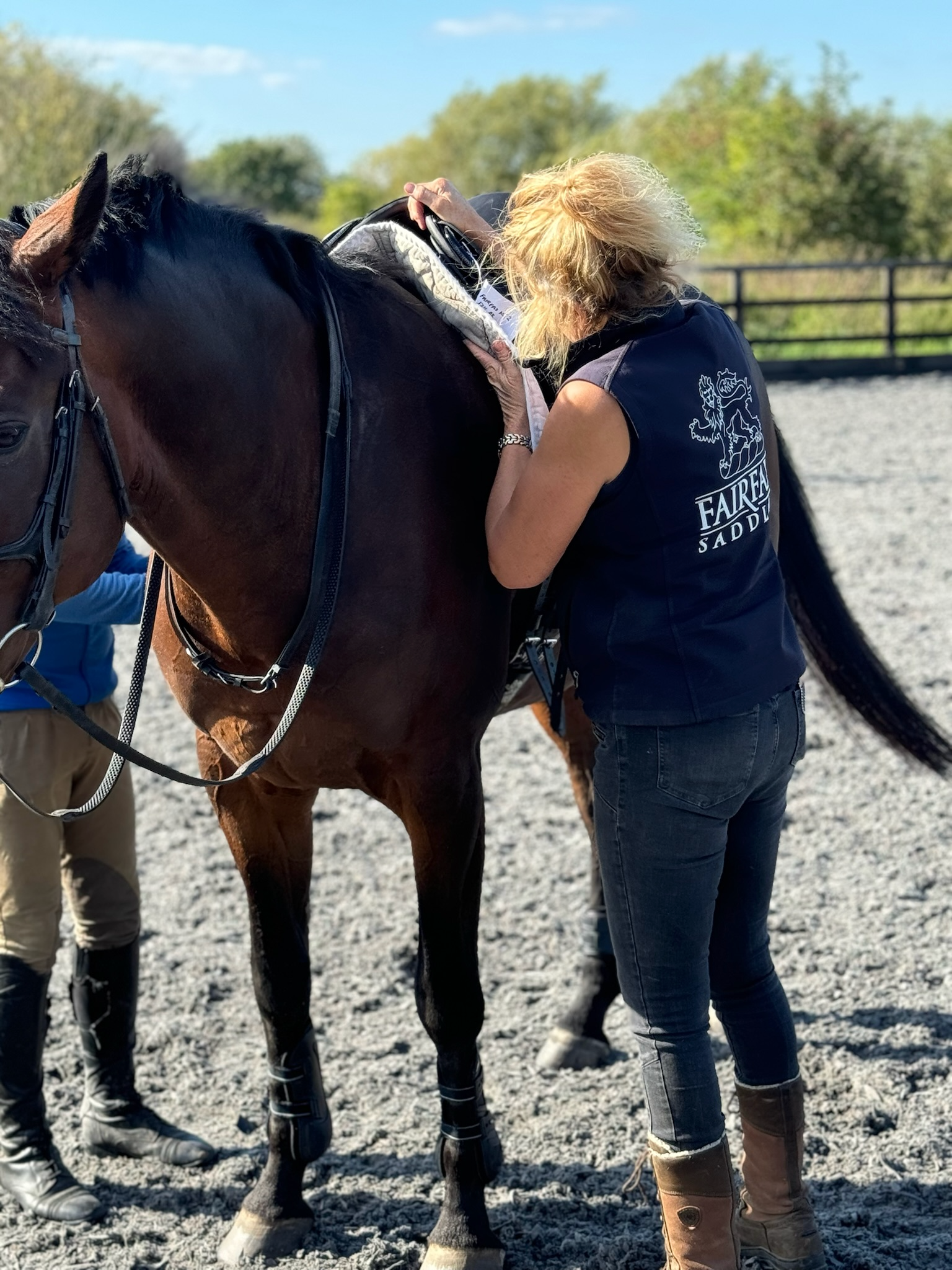 If you're looking for a new saddle, a selection will be brought based on the details you provided when booking—such as your horse’s size, breed, and discipline, along with your own height, build, and personal preferences. Each potential saddle will then be tried on your horse in turn and assessed using the same criteria.