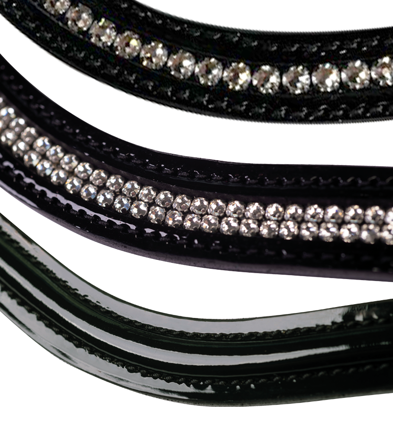 NOTE: There is a greater 'swoop' to the the curvature of the 'single row' diamante crystal browband in comparison to both the leather a 'double row' diamante browband